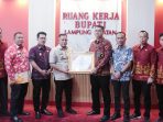 Inspiratif.co.id – Bupati Lampung Selatan H. Nanang Ermanto menyerahkan piagam penghargaan kepada Kepala Kantor Agraria dan Tata Ruang/Badan Pertanahan Nasional (ATR/BPN) Lampung
